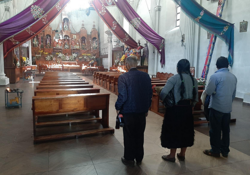 Doch dieser Eindruck änderte sich schlagartig, als ich plötzlich ÜBERALL Coca-Cola sah. Die Willkommensschilder vieler Gemeinden waren mit Cola-Logos versehen. In Supermärkten stapelten sich Flaschen in allen Größen: von kleinen Glasflaschen bis zu gigantischen 3-Liter-Plastikkanistern – manchmal sogar im Mehrfachpack. Auf den Straßen, in den Taquerías – überall tranken Menschen Cola. Manche Apotheken verkauften sie sogar als angebliches Heilmittel. Und am schockierendsten für mich: in einigen Kirchen wurden Zeremonien (s. Abb. unten) mit Cola durchgeführt. Da dachte ich nur: STOP. Was passiert hier?